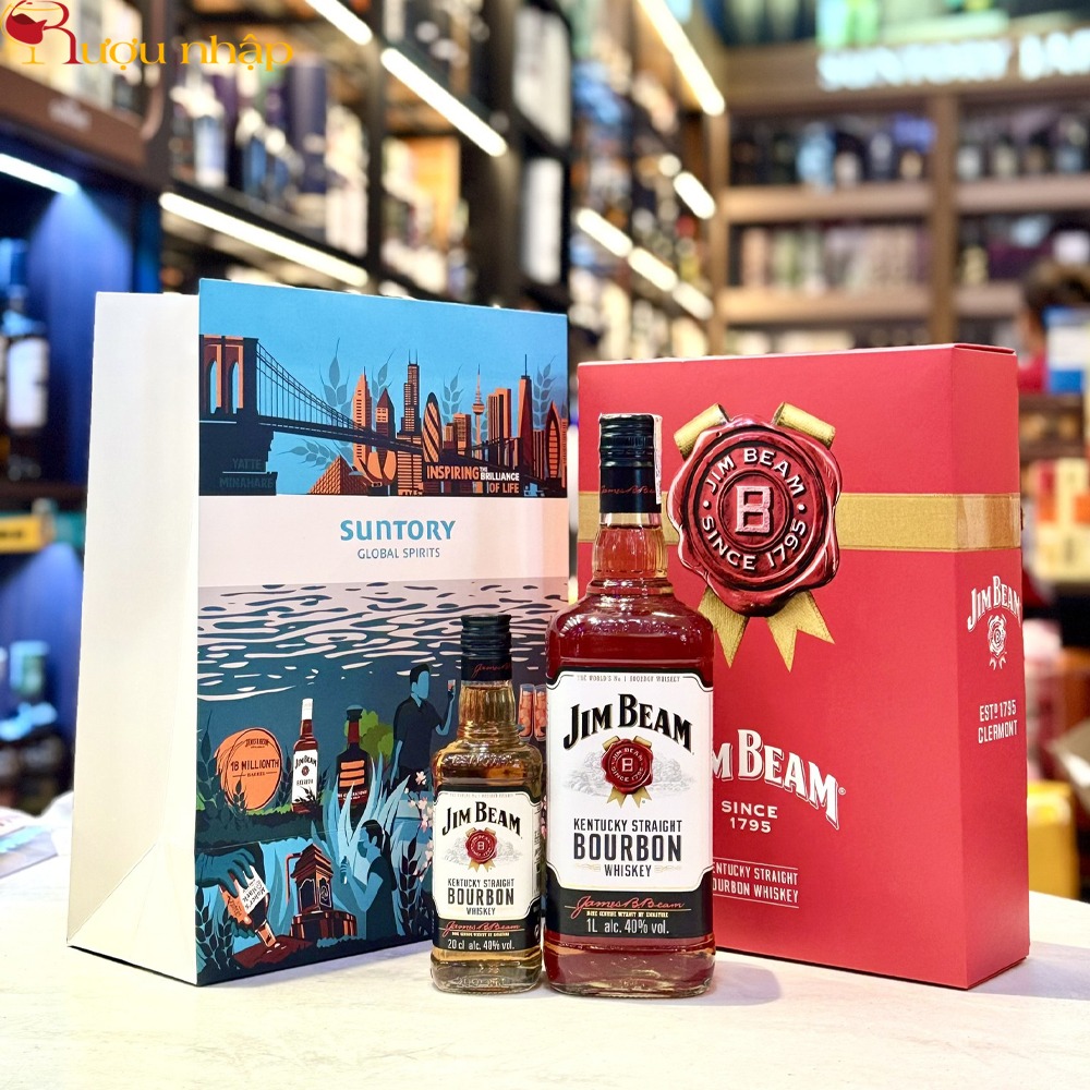 Rượu Jim Beam Bourbon 1L Hộp quà Tết 2025