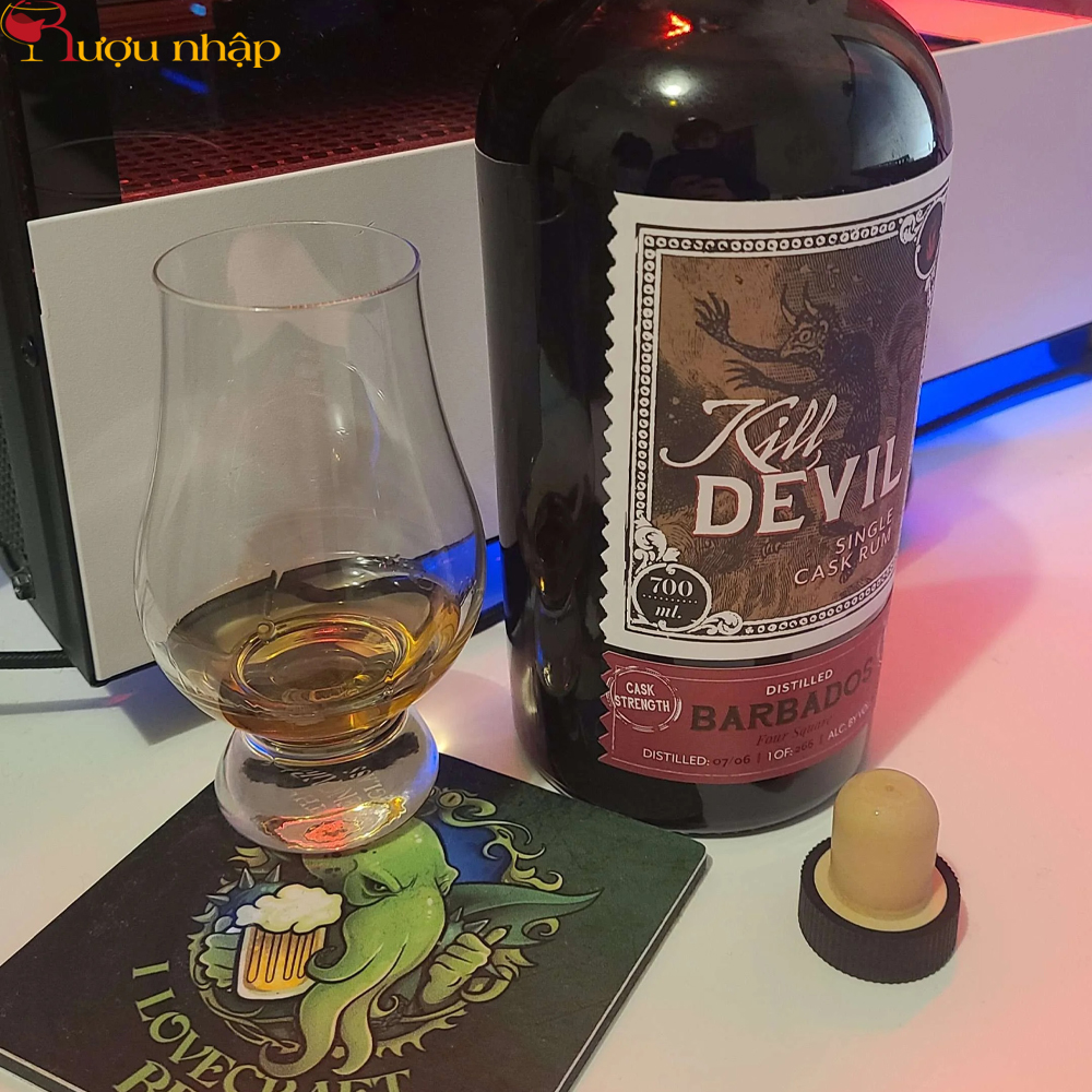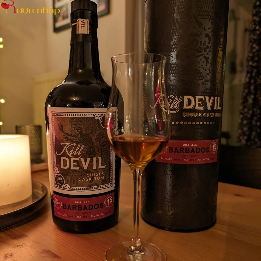 Rum Kill Devil 15 năm – Barbados mang hương thơm phức hợp và quyến rũ của trái cây chín, vani, caramel và gỗ sồi, hậu vị sâu lắng, dài lâu, và một kết cấu mạnh mẽ, tròn đầy – đậm chất rượu rum cao cấp thủ công.