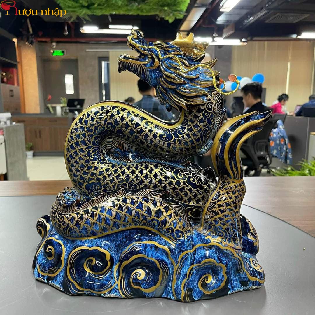 n“Tết đến Xuân về, cỏ cây đâm chồi nảy Lộc” – câu ca dao quen thuộc của người Việt đã thể hiện tinh thần của dịp Tết, mùa xuân và sự đổi mới. Trong truyền thống người Việt, việc trưng bày linh vật năm mới như Rồng Vàng là một cách thể hiện sự tôn kính đối với ông bà tổ tiên và kết nối với các thế hệ trước và sau. “Long Vân Hội Lộc” không chỉ là một sản phẩm, mà còn là một biểu tượng của niềm hy vọng vào một năm mới an khang thịnh vượng. Tác phẩm này mang ý nghĩa của sự thăng tiến, của việc vượt qua mọi khó khăn và trở nên giàu có và phú quý. “Hội Lộc” tượng trưng cho sự khao khát gặp nhiều may mắn, nhưng đồng thời cũng thể hiện tinh thầ ỗ lực và cố gắng của co gười. Nó cho chúng ta thấy rằng may mắn không chỉ đến từ sự ngẫu nhiên mà còn phụ thuộc vào khả năng và ý chí của mỗi người. Chúng ta phải hóa “Rồng” của mình để đạt đến tầm cao mới. >>> Xem thêm:Rượu Hộp Quà Tết chính hãng